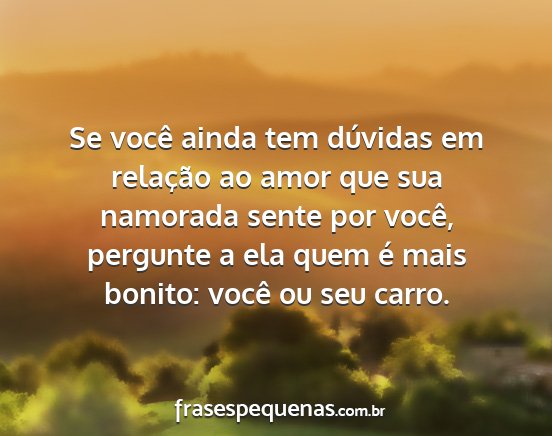 Se você ainda tem dúvidas em relação ao amor que sua namorada sente por você, pergunte a ela quem é mais bonito: você ou seu carro.