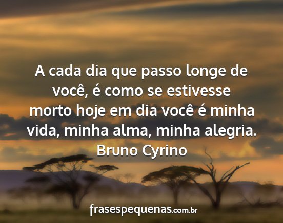 A cada dia que passo longe de você, é como se estivesse morto hoje em dia você é minha vida, minha alma, minha alegria.Bruno Cyrino
