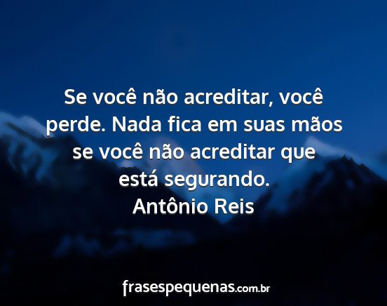 Se você não acreditar, você perde. Nada fica em suas mãos se você não acreditar que está segurando.Antônio Reis