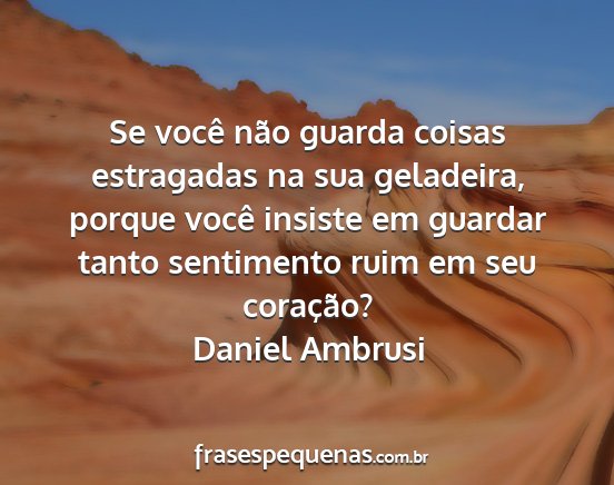 Se você não guarda coisas estragadas na sua geladeira, porque você insiste em guardar tanto sentimento ruim em seu coração?Daniel Ambrusi