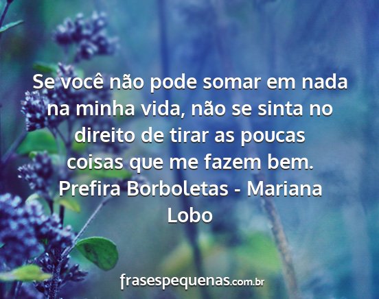 Se você não pode somar em nada na minha vida, não se sinta no direito de tirar as poucas coisas que me fazem bem.Prefira Borboletas - Mariana Lobo