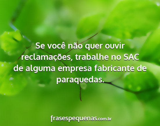 Se você não quer ouvir reclamações, trabalhe no SAC de alguma empresa fabricante de paraquedas.
