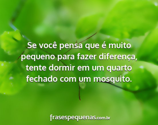 Se você pensa que é muito pequeno para fazer diferença, tente dormir em um quarto fechado com um mosquito.