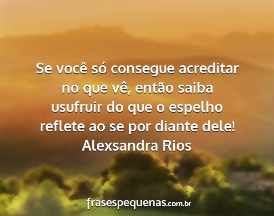 Se você só consegue acreditar no que vê, então saiba usufruir do que o espelho reflete ao se por diante dele!Alexsandra Rios