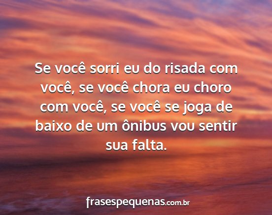 Se você sorri eu do risada com você, se você chora eu choro com você, se você se joga de baixo de um ônibus vou sentir sua falta.