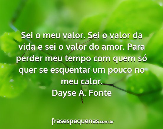 Sei o meu valor. Sei o valor da vida e sei o valor do amor. Para perder meu tempo com quem só quer se esquentar um pouco no meu calor.Dayse A. Fonte