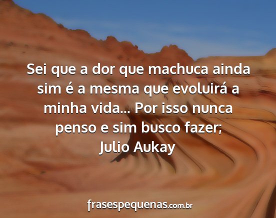 Sei que a dor que machuca ainda sim é a mesma que evoluirá a minha vida... Por isso nunca penso e sim busco fazer;Julio Aukay
