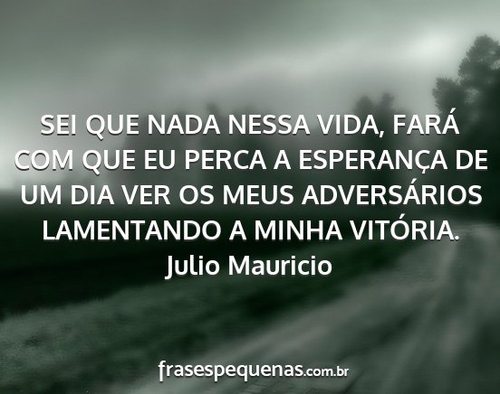 SEI QUE NADA NESSA VIDA, FARÁ COM QUE EU PERCA A ESPERANÇA DE UM DIA VER OS MEUS ADVERSÁRIOS LAMENTANDO A MINHA VITÓRIA.Julio Mauricio