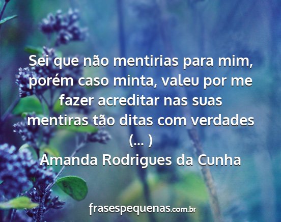 Sei que não mentirias para mim, porém caso minta, valeu por me fazer acreditar nas suas mentiras tão ditas com verdades (... )Amanda Rodrigues da Cunha
