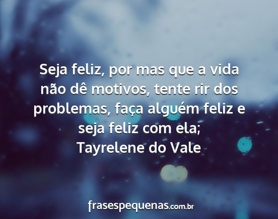 Seja feliz, por mas que a vida não dê motivos, tente rir dos problemas, faça alguém feliz e seja feliz com ela;Tayrelene do Vale