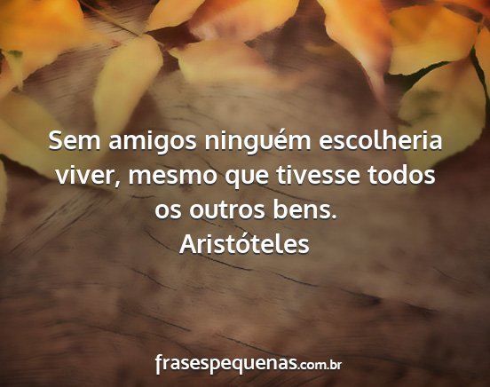 Sem amigos ninguém escolheria viver, mesmo que tivesse todos os outros bens.