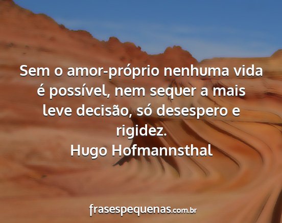 Sem o amor-próprio nenhuma vida é possível, nem sequer a mais leve decisão, só desespero e rigidez.Hugo Hofmannsthal