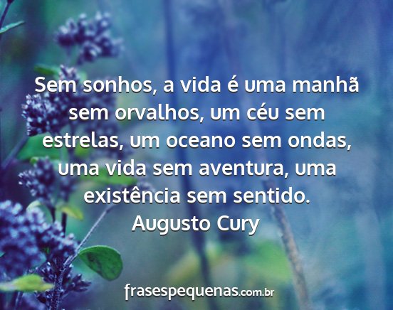 Sem sonhos, a vida é uma manhã sem orvalhos, um céu sem estrelas, um oceano sem ondas, uma vida sem aventura, uma existência sem sentido.Augusto Cury