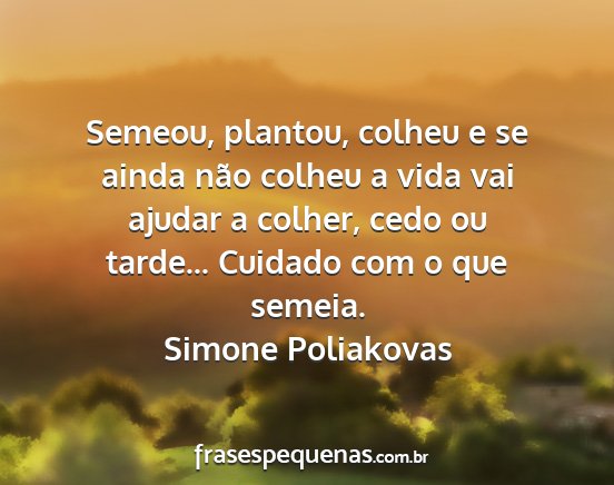 Semeou, plantou, colheu e se ainda não colheu a vida vai ajudar a colher, cedo ou tarde... Cuidado com o que semeia.Simone Poliakovas