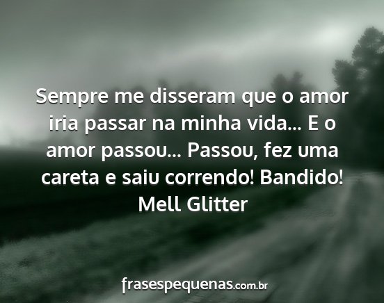 Sempre me disseram que o amor iria passar na minha vida... E o amor passou... Passou, fez uma careta e saiu correndo! Bandido!Mell Glitter