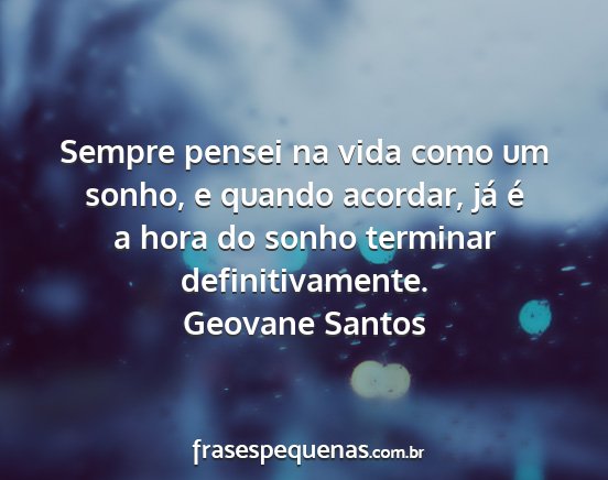 Sempre pensei na vida como um sonho, e quando acordar, já é a hora do sonho terminar definitivamente.Geovane Santos