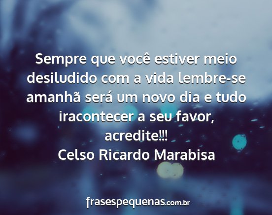 Sempre que você estiver meio desiludido com a vida lembre-se amanhã será um novo dia e tudo iracontecer a seu favor, acredite!!!Celso Ricardo Marabisa
