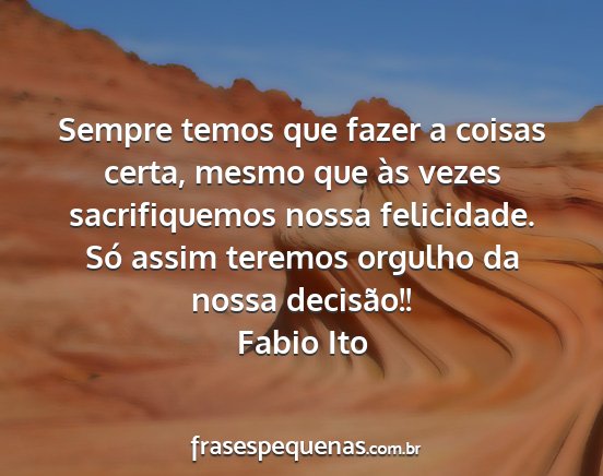 Sempre temos que fazer a coisas certa, mesmo que às vezes sacrifiquemos nossa felicidade. Só assim teremos orgulho da nossa decisão!!Fabio Ito