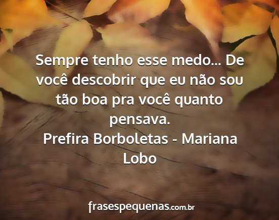 Sempre tenho esse medo... De você descobrir que eu não sou tão boa pra você quanto pensava.Prefira Borboletas - Mariana Lobo