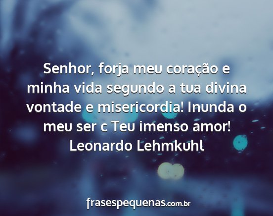 Senhor, forja meu coração e minha vida segundo a tua divina vontade e misericordia! Inunda o meu ser c Teu imenso amor!Leonardo Lehmkuhl