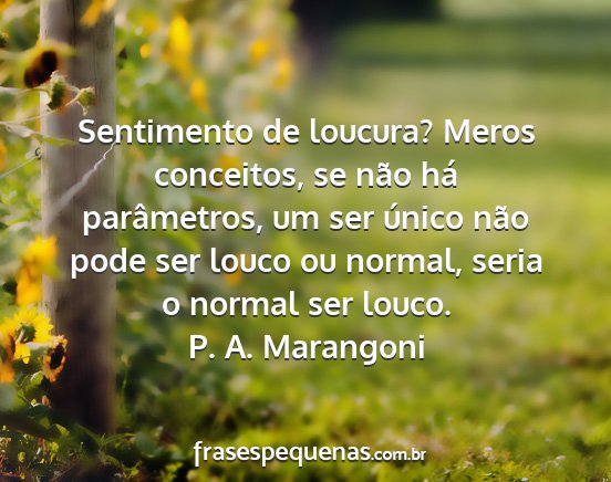 Sentimento de loucura? Meros conceitos, se não há parâmetros, um ser único não pode ser louco ou normal, seria o normal ser louco.P. A. Marangoni