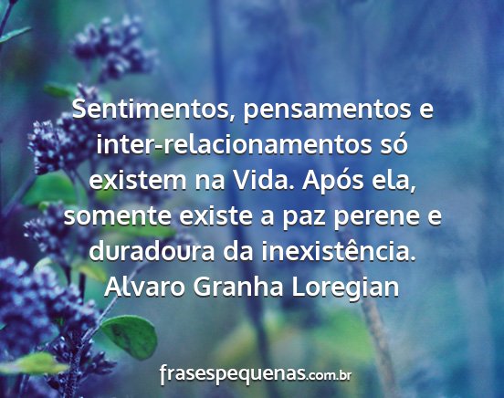 Sentimentos, pensamentos e inter-relacionamentos só existem na Vida. Após ela, somente existe a paz perene e duradoura da inexistência.Alvaro Granha Loregian