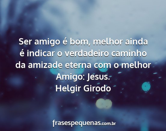 Ser amigo é bom, melhor ainda é indicar o verdadeiro caminho da amizade eterna com o melhor Amigo: Jesus.Helgir Girodo