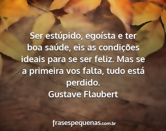 Ser estúpido, egoísta e ter boa saúde, eis as condições ideais para se ser feliz. Mas se a primeira vos falta, tudo está perdido.Gustave Flaubert
