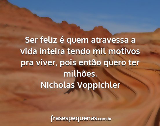 Ser feliz é quem atravessa a vida inteira tendo mil motivos pra viver, pois então quero ter milhões.Nicholas Voppichler