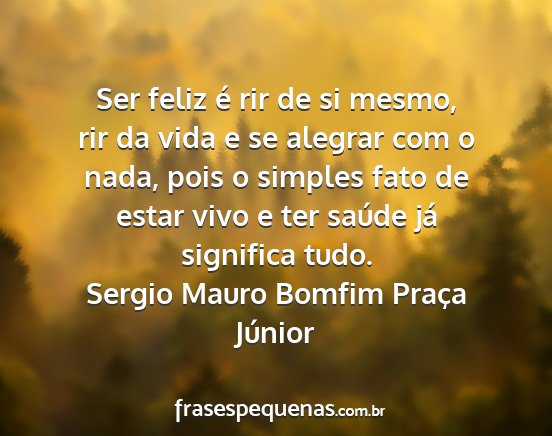 Ser feliz é rir de si mesmo, rir da vida e se alegrar com o nada, pois o simples fato de estar vivo e ter saúde já significa tudo.Sergio Mauro Bomfim Praça Júnior