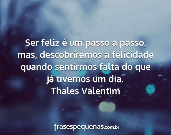 Ser feliz é um passo a passo, mas, descobriremos a felicidade quando sentirmos falta do que já tivemos um dia.Thales Valentim