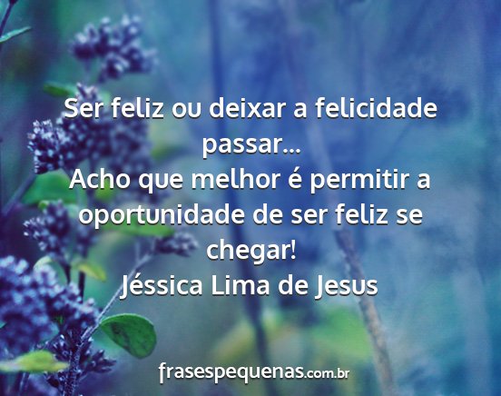 Acho que melhor é permitir a oportunidade de ser feliz se chegar!Jéssica Lima de Jesus