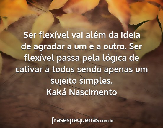 Ser flexível vai além da ideia de agradar a um e a outro. Ser flexível passa pela lógica de cativar a todos sendo apenas um sujeito simples.Kaká Nascimento