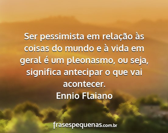 Ser pessimista em relação às coisas do mundo e à vida em geral é um pleonasmo, ou seja, significa antecipar o que vai acontecer.Ennio Flaiano