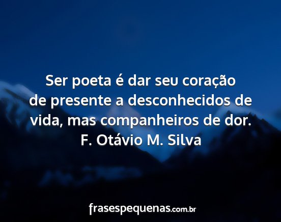 Ser poeta é dar seu coração de presente a desconhecidos de vida, mas companheiros de dor.F. Otávio M. Silva