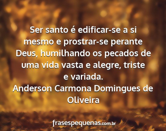 Ser santo é edificar-se a si mesmo e prostrar-se perante Deus, humilhando os pecados de uma vida vasta e alegre, triste e variada.Anderson Carmona Domingues de Oliveira