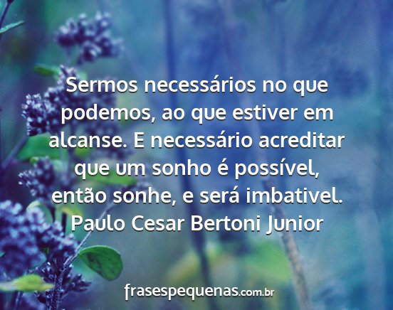 Sermos necessários no que podemos, ao que estiver em alcanse. E necessário acreditar que um sonho é possível, então sonhe, e será imbativel.Paulo Cesar Bertoni Junior