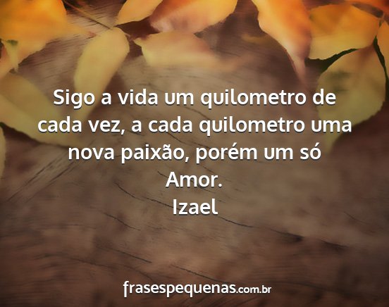 Sigo a vida um quilometro de cada vez, a cada quilometro uma nova paixão, porém um só Amor.