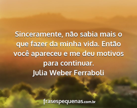 Sinceramente, não sabia mais o que fazer da minha vida. Então você apareceu e me deu motivos para continuar.Julia Weber Ferraboli