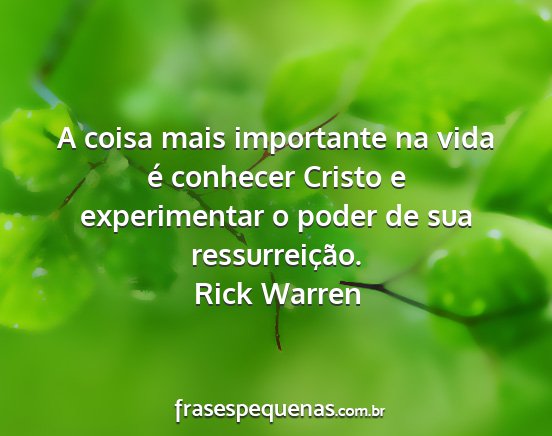 A coisa mais importante na vida é conhecer Cristo e experimentar o poder de sua ressurreição.Rick Warren