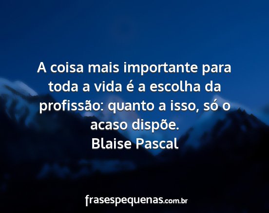 A coisa mais importante para toda a vida é a escolha da profissão: quanto a isso, só o acaso dispõe.Blaise Pascal