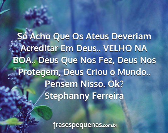Só Acho Que Os Ateus Deveriam Acreditar Em Deus.. VELHO NA BOA.. Deus Que Nos Fez, Deus Nos Protegem, Deus Criou o Mundo.. Pensem Nisso. Ok?Stephanny Ferreira