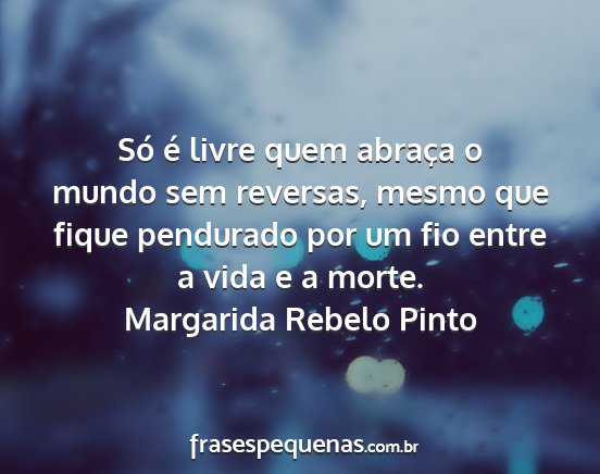 Só é livre quem abraça o mundo sem reversas, mesmo que fique pendurado por um fio entre a vida e a morte.Margarida Rebelo Pinto