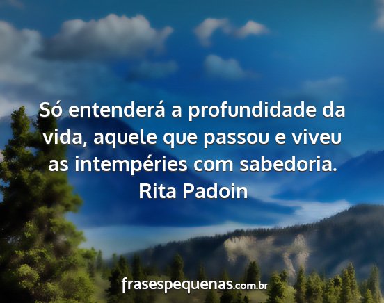 Só entenderá a profundidade da vida, aquele que passou e viveu as intempéries com sabedoria.Rita Padoin