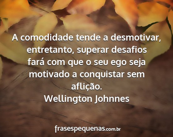 A comodidade tende a desmotivar, entretanto, superar desafios fará com que o seu ego seja motivado a conquistar sem aflição.Wellington Johnnes