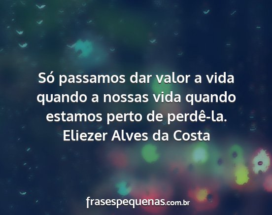 Só passamos dar valor a vida quando a nossas vida quando estamos perto de perdê-la.Eliezer Alves da Costa