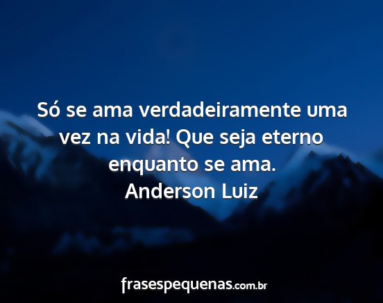 Só se ama verdadeiramente uma vez na vida! Que seja eterno enquanto se ama.