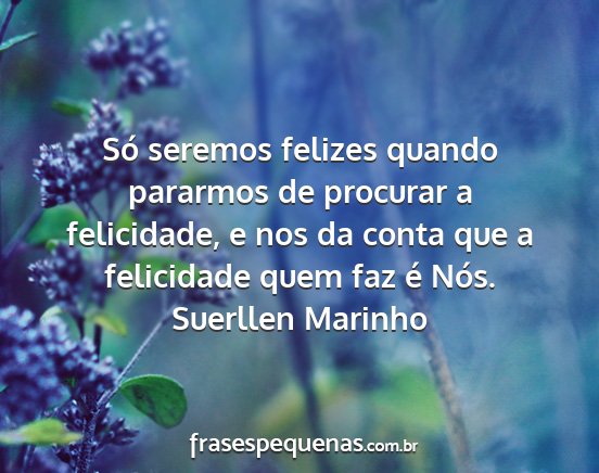 Só seremos felizes quando pararmos de procurar a felicidade, e nos da conta que a felicidade quem faz é Nós.Suerllen Marinho