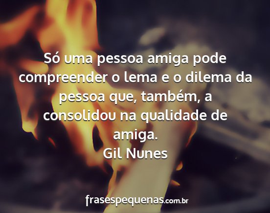 Só uma pessoa amiga pode compreender o lema e o dilema da pessoa que, também, a consolidou na qualidade de amiga.Gil Nunes
