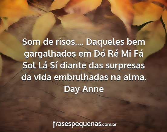 Som de risos.... Daqueles bem gargalhados em Dó Ré Mi Fá Sol Lá Sí diante das surpresas da vida embrulhadas na alma.Day Anne